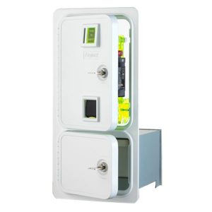 遊戲機雙門單投幣器+紙鈔機鐵門組 (含錢箱) 【產品資訊】 型號:CS3-SCM+BV-1 尺寸:高528.5 x 寬200.1 x深303 mm 【特色】 適用單投幣器/錢道、紙鈔機,含錢箱。 可調式投幣口尺寸 : Ø25~31 mm x 4 mm 。 可選配投幣口燈飾顏色 。 退幣按鈕。 耐用堅固鋅鋁合金模製硬幣門。 適用大部分廠牌的投幣器和紙鈔機。 易安裝及拿取投幣器/錢道。 投幣器/錢道安裝透明塑膠固定架,少維修。 客製烤漆顏色。 加入詢價車 已加入詢價車 瀏覽產品
